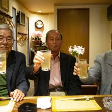 第9回 平成26年7月19日(土) 3人会を松山市で開催をしました。今回は、冨田君、羽藤君の了解を得て私の娘も参加をさせて頂きました。娘は、我が儘な私と高校時代から友人付き合いをさせて頂いている、お二人がどういう方か興味を持ったようです。それで懇談の場ではストレートに理由をお聞きしたり高校時代の思い出をお尋ねしたりしていましたが、お二人が娘に合わせお答え頂いたので大いに盛り上がりを見せました。娘も大変楽しかったと後で感想を述べました。冨田君、羽藤君本当にありがとう。 まず、最初に瀬戸内海料理を堪能した後、本日の主な目的ラスト20セントに40周年のお祝いを述べるため向かいました。ラスト20セントではママさんを交え祝40周年の乾杯をしました。40年前はママさんも20代、私も20代でした。前のボトルボックッスを眺めているとなにか40年の月日を思いなつかしいようなまた友人たちや娘と飲めることが嬉しいような不思議な感覚に捕らわれました。ママさんは40年間で最も楽しかったことは多くの方々と知り合えたことだとの事でした。40年間の人脈素晴らしいでしょうね。また最も苦しかったこともお答え頂きましたがここには書きません。ふと、私のボトルの名札を見ると県庁同期の松岡さんの名前がありました。私をラスト20セントに最初に連れて来て頂いた方です。若い頃松岡さんと良く飲んだ事を思い出しました。 ママさんを交え写真を撮影した後恒例のカラオケになりました。ママさんの話によると四国で最初にカラオケをラスト20セントが導入したとの事でした。夢中で歌っている内いつものようにあっという間にJRの時間となりました。それで4人でラスト20セントが永久に繁栄するようにと念じながら満足の内お別れをしました。次回3人会は今治開催です。どういうところで開催するのか楽しみです。3人会は常に新しいところを使わせて頂きます。
