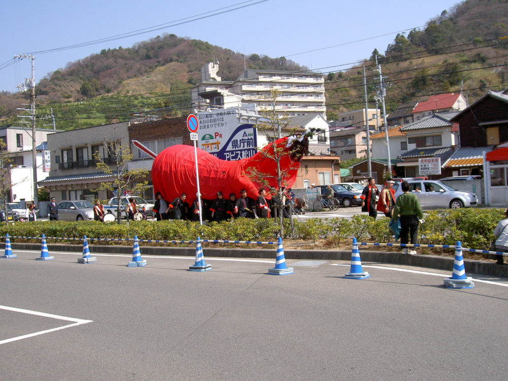 愛媛県津島町の牛鬼が松山市高浜町を練り歩きました。南予の文化が初めて高浜町に来た瞬間です。