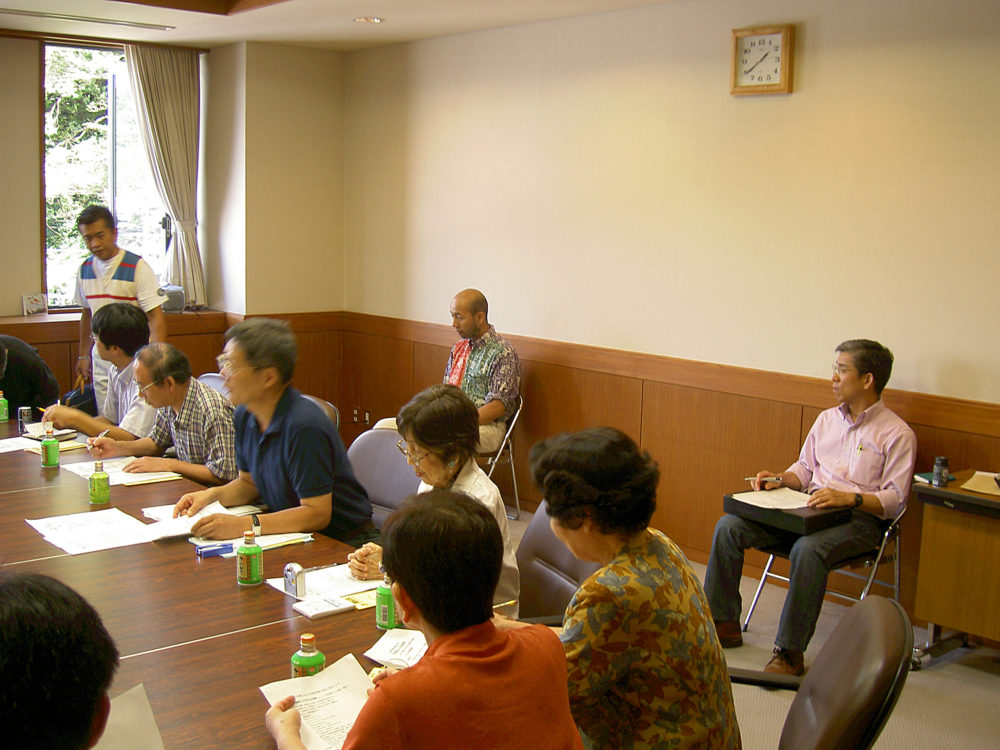 2006年9月18日関係者の方々に呼びかけ地方局で初めての打合せ会議にこぎつけた。そこで皆さんに説明をさせて頂いた。0予算で行うこと。JR宇和島駅からきさいやロードの長いアーケードを使って行うこと。全国に打ち出せるオンリーワンのものにすること。つまり、神應観光課長の言葉を借りると「新宇和島伝説 四国宇和島」を創りたいということである。中には多分県が呼びかけたと言うことだから予算が付いた事業と考えた方々もおられたかも知れない。意図は第1回じゃこ天カーニバルのポスターに表しているが宇和島地域を越え外に広げていけるものだ。それには文化の香りが必要だ。だから全国でも通用する大和田建樹の力を借りることを考えた。こういうことは市の事だから宇和島市がすれば良いとの意見も根強くあった。そういうことを言っていると新しい事業はなかなか出来ない。国であれ県であれ市町であれやれるところがすれば良いというのが私の考えである。長いきさいやロードでの成功のポイントは商店街組合の積極的な支援が必要と考えていた。アーケード街にはスピーカーが設置されている。そこにじゃこ天の歌を流す、アーケードの下で市民のみなさんが手をつないで踊る。非常に長い踊りの輪だ、ギネスものだなと考えた。つきがあった。商店街組合長三原さんが音響マニアであり高級なシステムを持たれていた。これを使って頂けないかをお願いをした。実は会議はこれが初めてで最後である。参加頂いた皆様方が自らの力で成功に向けて努力を頂いたのである。初めてのことでしかも0予算だそれぞれのところできっと様々なストリーが展開された思われます。それを克服される力を持たれている。それが宇和島の方々だ。そして地方局は、ポスター作成、ガイヤカーニバルで踊って頂いた方々を中心としたじゃこ天踊り普及隊の編成、活動、各団体のトップの方々への参加のお願いへと続いて行く。なお、この写真は記念になるかもしれないと井野課長補佐にお願いしたものだ。まさかこういう形で日の目を見るとは当時思いもしなかった。