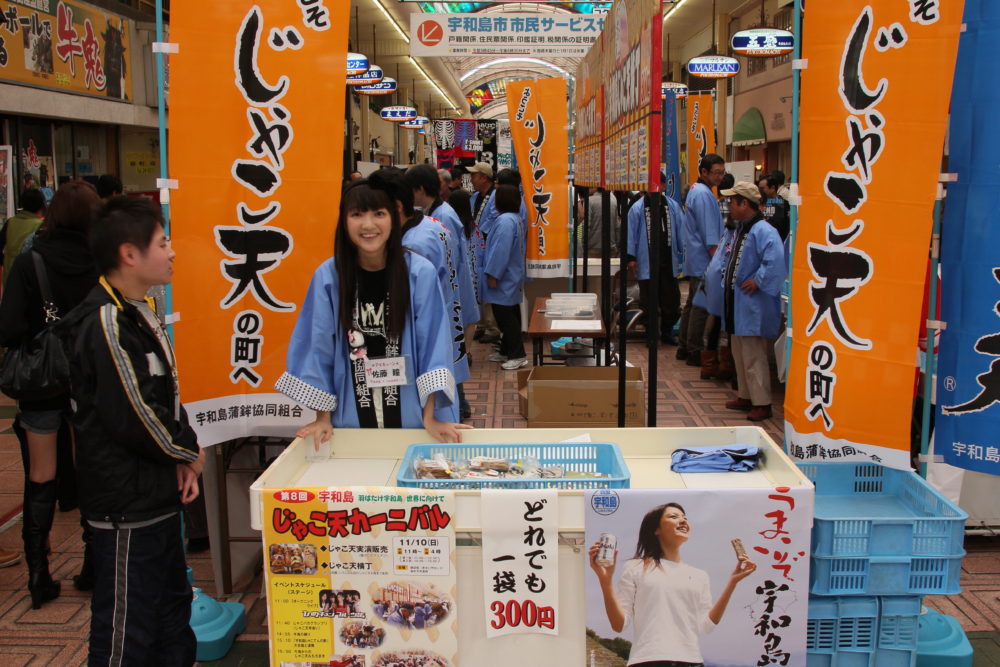 宇和島じゃこ天の町への登り うまいぞ宇和島じゃこ天のポスター松山観光港にも掲示させて頂きました。