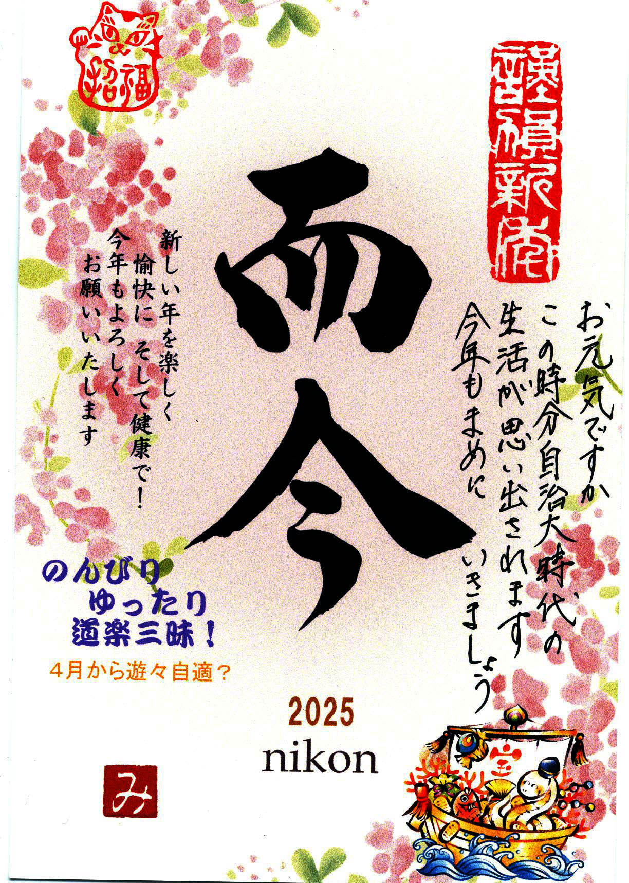トピックス5を投稿します 画像 2025年4月1日 shinomiya tadamasa コメントする やっと賀状の整理ができました。 元気な皆様方をお楽しみ頂ければ幸いです。 令和7年4月1日(火) 四之宮忠正 トピックス5へ